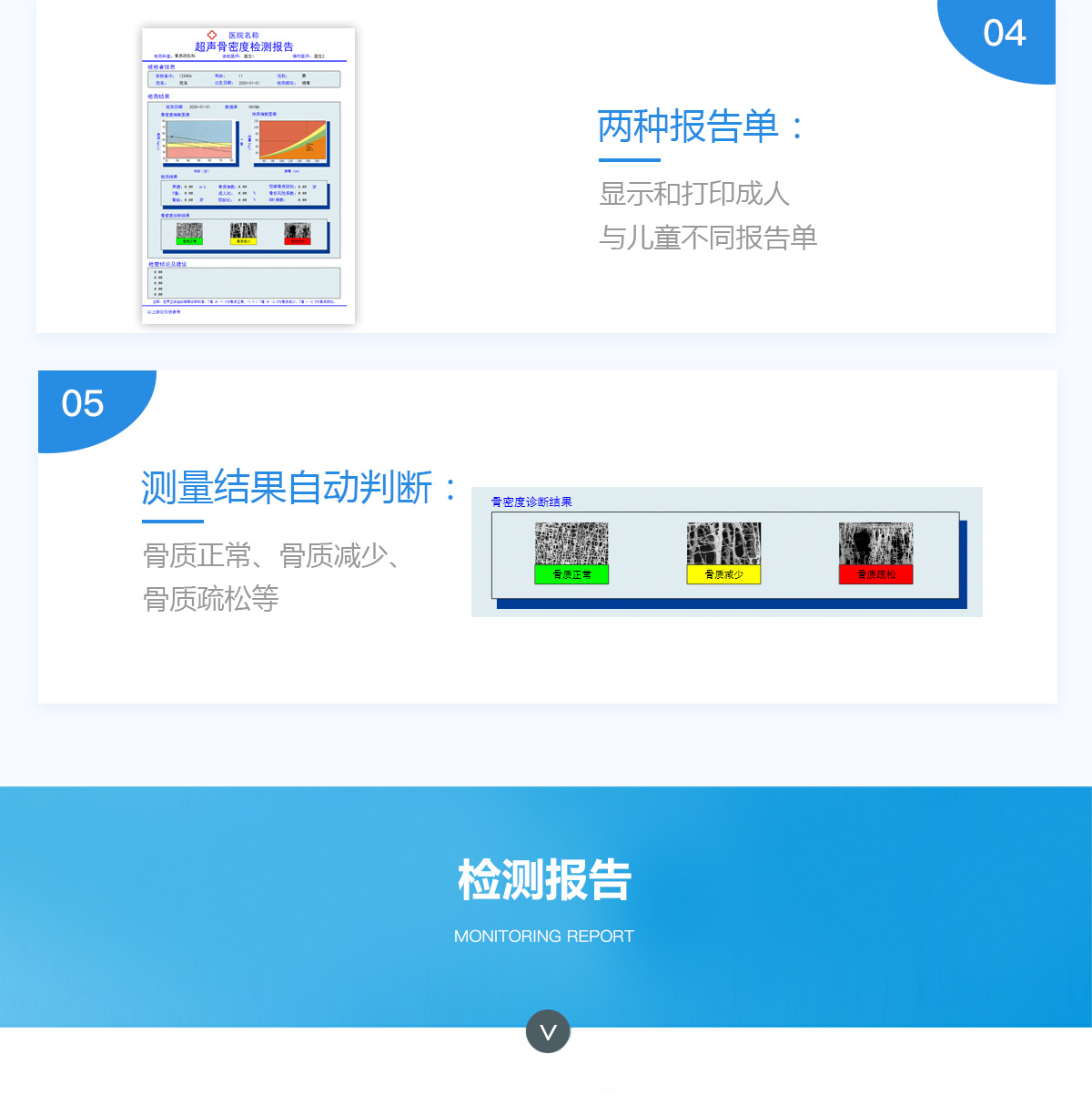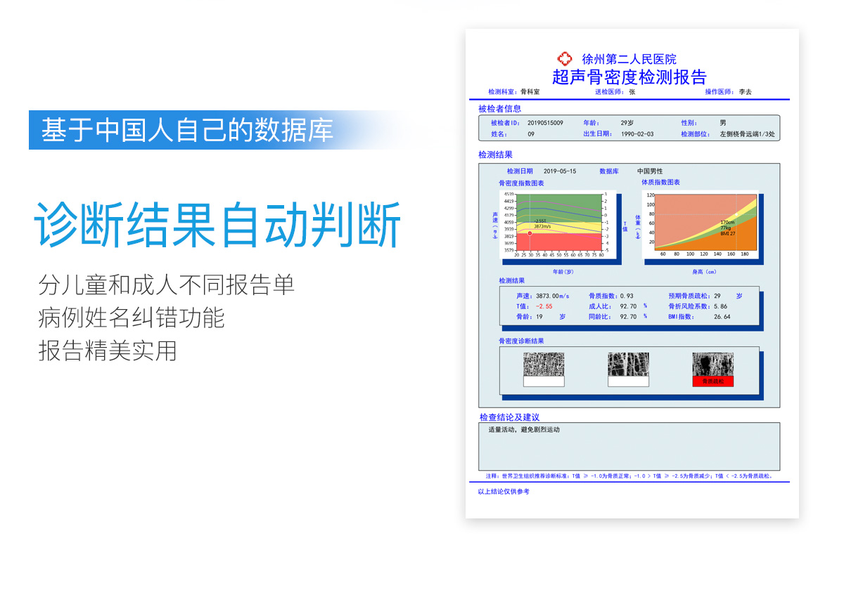■ 軟件優(yōu)勢::BMD-A系列超聲骨密度檢測儀一臺儀器裝配有智能分析系統(tǒng),經(jīng)濟實用??蓽y量0-100歲人群。